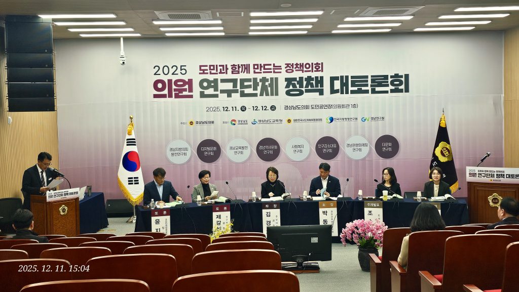 12월 11일, ‘2025 도민과 함께 만드는 정책의회 의원연구단체 정책 대토론회’에 창원대학교 행정대학원 학생 자격으로 참석하였다. 다양한 분야의 의원들과 전문가, 도민들이 한자리에 모여 경남의 정책 방향을 논의하는 현장을 직접 지켜보며, 이론으로만 배우던 행정과 정책 과정이 현실에서 어떻게 이루어지는지 생생하게 느낄 수 있는 소중한 시간이었다.