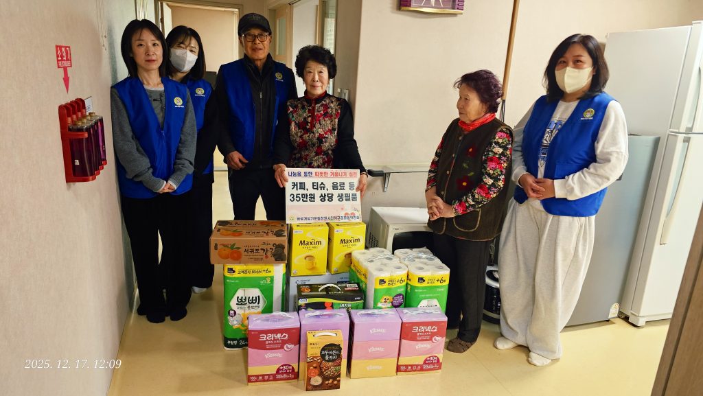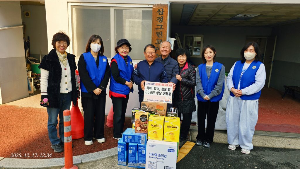 12월 17일, 바르게살기운동 경화동위원회는 나눔을 통한 따뜻한 겨울나기 실천을 위해 조천경로당, 경화포스코경로당, 삼정경로당에 각각 커피, 티슈, 음료 등 35만 원 상당의 생필품을 기증하였다. 겨울을 앞두고 경로당을 이용하시는 어르신들께 작은 위로와 실질적인 도움이 되기를 바라는 마음을 담아 준비한 나눔이었다.