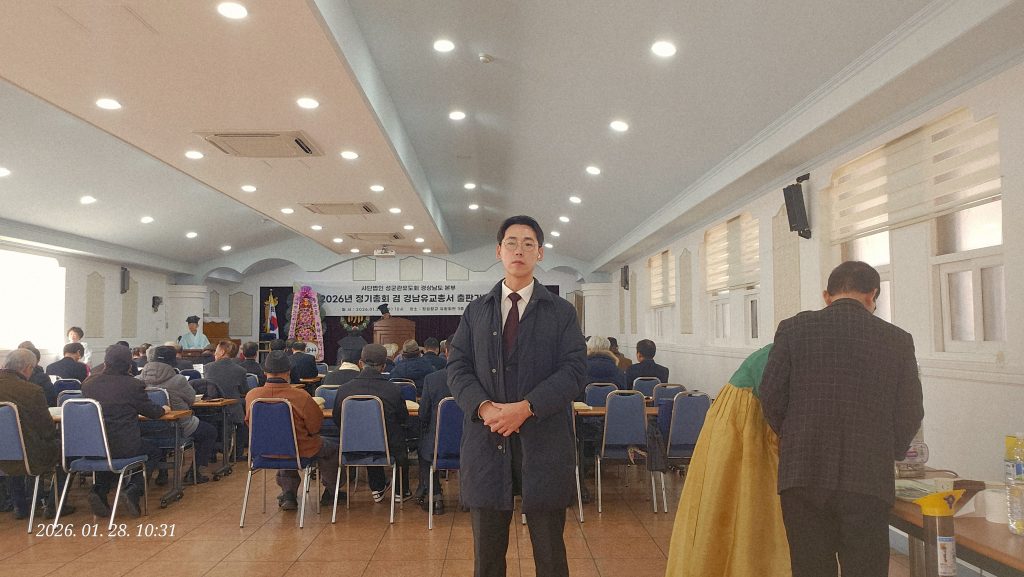 1월 28일 오전 10시 열린 성균관유도회 경상남도본부 정기총회 겸 ‘경남유교총서’ 출판기념회에는 웅천주자영당 청년유사 자격으로 참여했다. 56년 만에 처음 단체지가 발간되는 역사적인 자리에 지역 유림의 한 구성원으로 함께했다는 점에서, 개인적으로도 매우 뜻깊은 경험이 되었다.